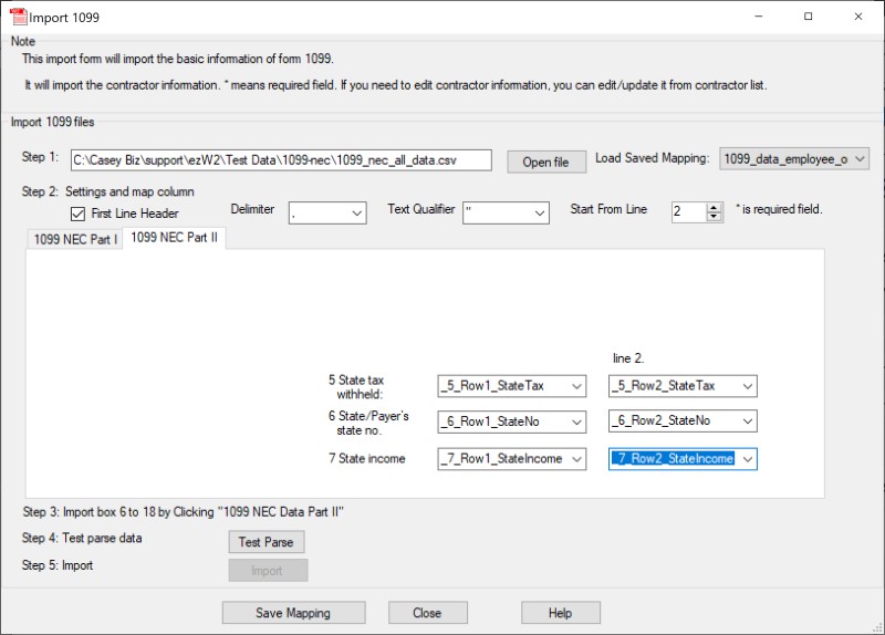 With ezW2 software, you can import 1099 NEC form data from the external .csv file in a few clicks.