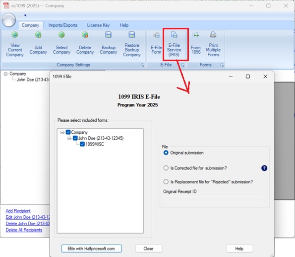 With ez1099 2025 and later version, you have two options for e-filing 1099s and 1096 forms with the IRS:
