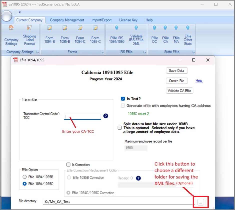 ez1095 software can generate the XML documents you can upload to CA site to report health insurance information. The efile XML documents include 1095 forms and 1094 form. If you are a first time efiler, please follow this guide from step 1.