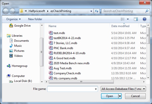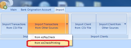 Click top menu "Import", then click sub menu "Import Transactions from Other Sources File", then click "from ezCheckPrinting" sub menu to open the Import Transactions screen