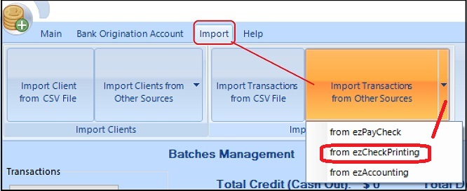 Step 1: Import Transaction(s) from ezCheckPrinting software