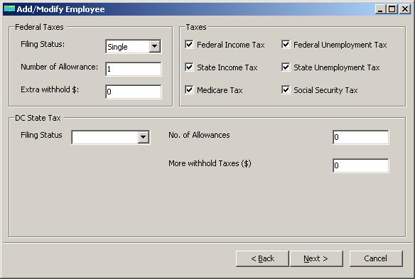 • Calculate Federal & State Taxes, Print Paychecks, Print W2, W3, 941, 943 and 940.