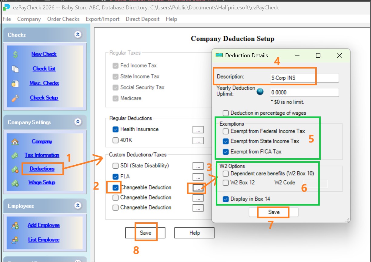 Step 2: Add a new deduction for S-Corp officer health insurance