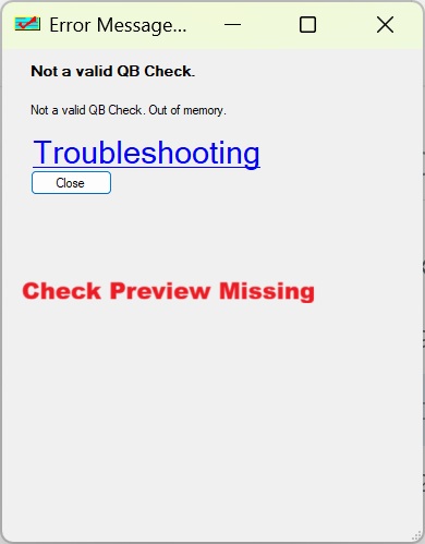 Several reasons can cause this "Invalid QuickBooks check" error. Please follow the steps below to fix it. If you still need assistance, please follow the last step and send us the data file "qbfile0001.txt".